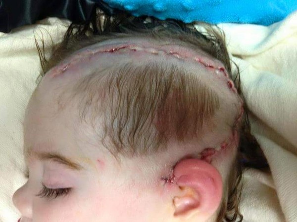 כשאמה של התינוקת הגיעה לבית החולים, היא ראתה את בתה שוכבת במיטת בית החולים חבושה ומחוברת לצינורות רבים. שאיין עברה ניתוחים רבים, והיו צריכים להסיר חצי מהמוח שלה, כך מדווח הדיילי מייל.