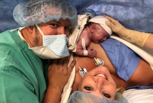 האמא קיילה לאנד התרגשה מאוד כאשר התינוק השלישי שלה, והבן הראשון שלה קולטון נולד ב 24 ליולי, 2019.