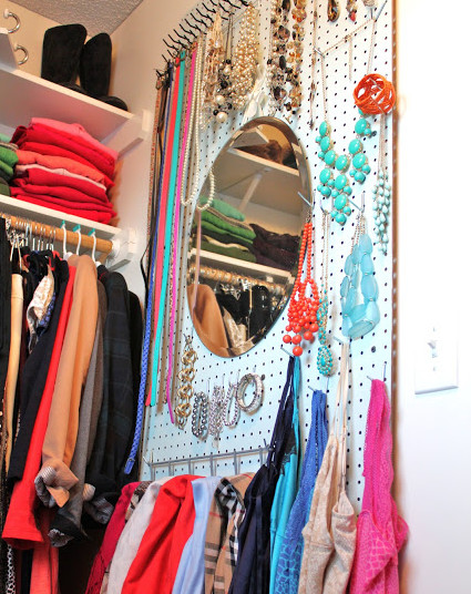 שמרו על התכשיטים במקום אחד. תלו לוח מחורר על דלת הארון ותלו את כל מה שאתם רוצים על הלוח.
