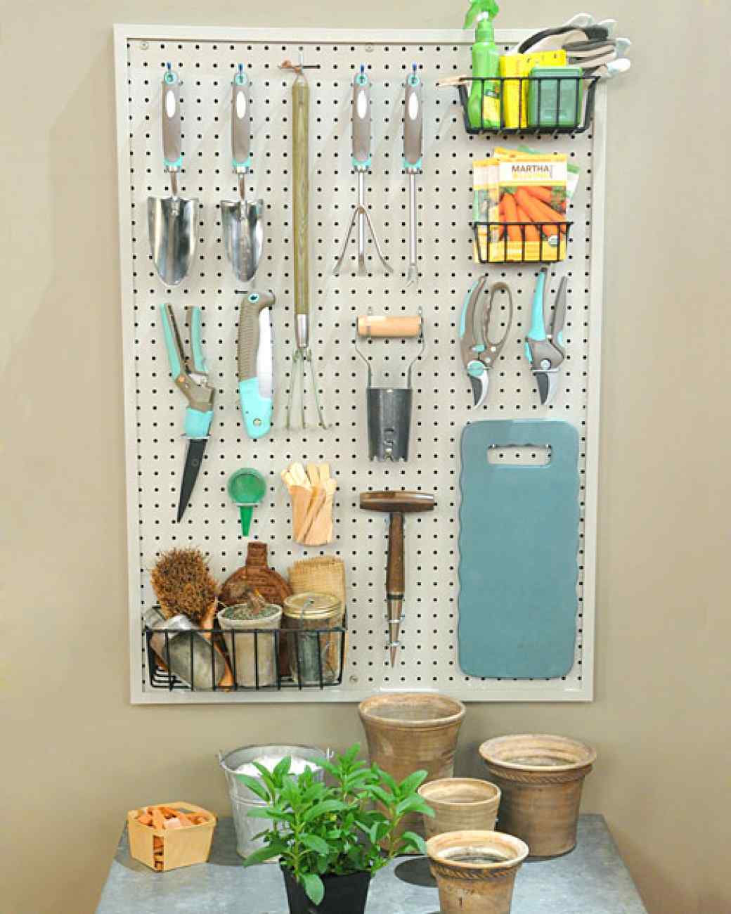 אם אתם אוהבים לעבוד בגינה, אז השתמשו בלוח מחורר כדי לאחסן את הכלים ואת האקססוריז במקום אחד. אתם יכולים לתלות אותו בכל מקום בבית או במחסן.
