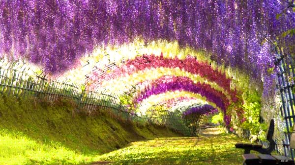 ממוקמת גם בפארק הפרחים באשיקאגה, מנהרת הויסטריה מציגה מגוון רחב של עץ הויסטריה ומספקת בריחה נפלאה ל’עולם האגדות’.