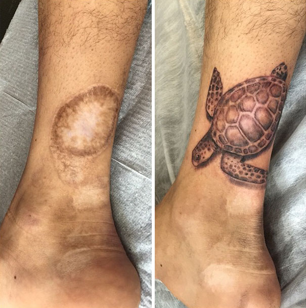 צפו בתמונות למטה כדי לראות למה אנחנו מתכוונים. חלק מהקעקועים מסתירים צלקות לגמרי, כשאחרים משתלבים איתן בצורה מושלמת והופכים את הצלקת לחלק מיצירת אמנות גאונית.