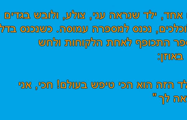 המורה הייתה מתוסכלת מאוד מהתשובות המטופשות של התלמיד, אך התשובה האחרונה השאירה אותה ללא מילים